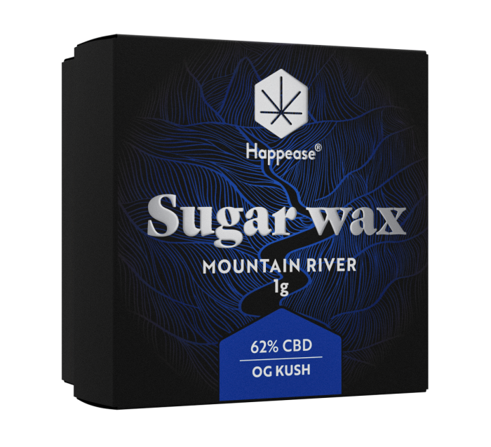 El Happease Sugar wax de formulación Mountain river es un extracto CBD o resina CBD que se extrae de la planta del cáñamo. Ningún extracto de cannabis es superior a otro, pero el wax es el mejor término medio en cuanto a sabor, facilidad de uso, consistencia y potencia. Muchas de las otras opciones se inclinan demasiado en una u otra dirección. La extracción de esta resina CBD es un procedimiento bastante complejo. La formulación  Mountain river  contiene un perfil de terpeno amaderado con una mezcla de OG que crea sensación de calma, siendo perfecto para usar durante la noche ya que ayuda a mejorar el sueño.